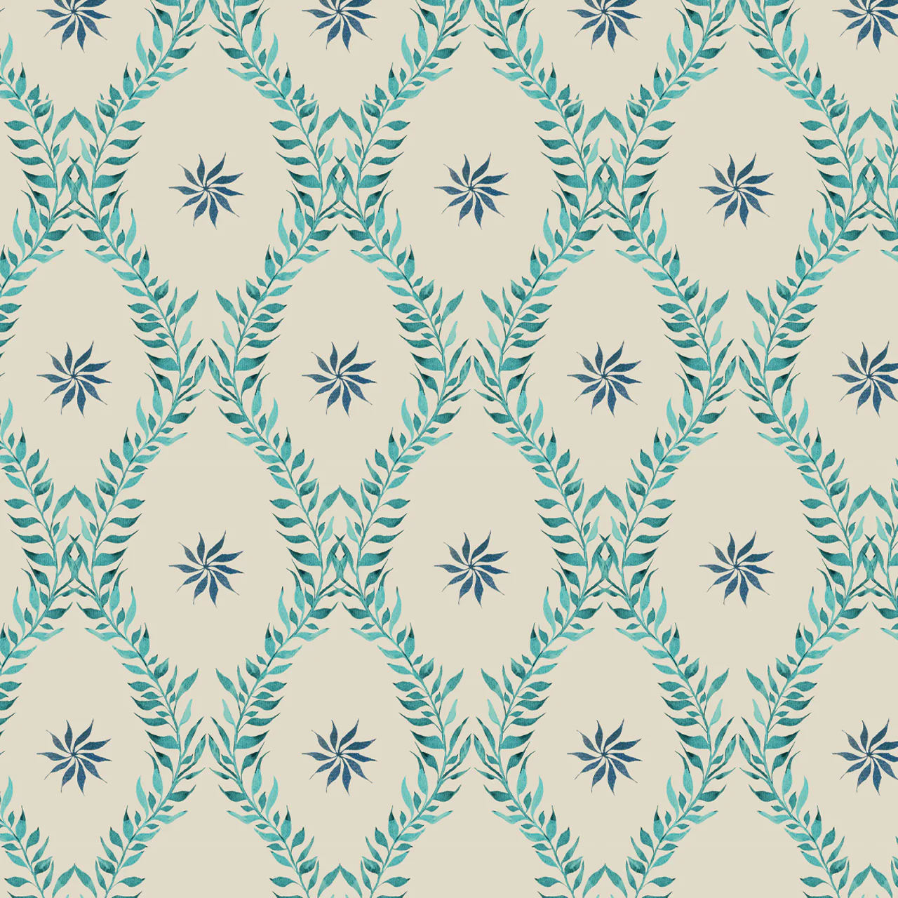 Hand-painted using Japanese inks, Belle’s classically inspired, diamond-shaped pattern exudes elegance in its uniform simplicity – but not all is as it seems. Step closer and the print’s gentle, leafy vines reveal themselves as they organically unfurl across the progressive design. Â