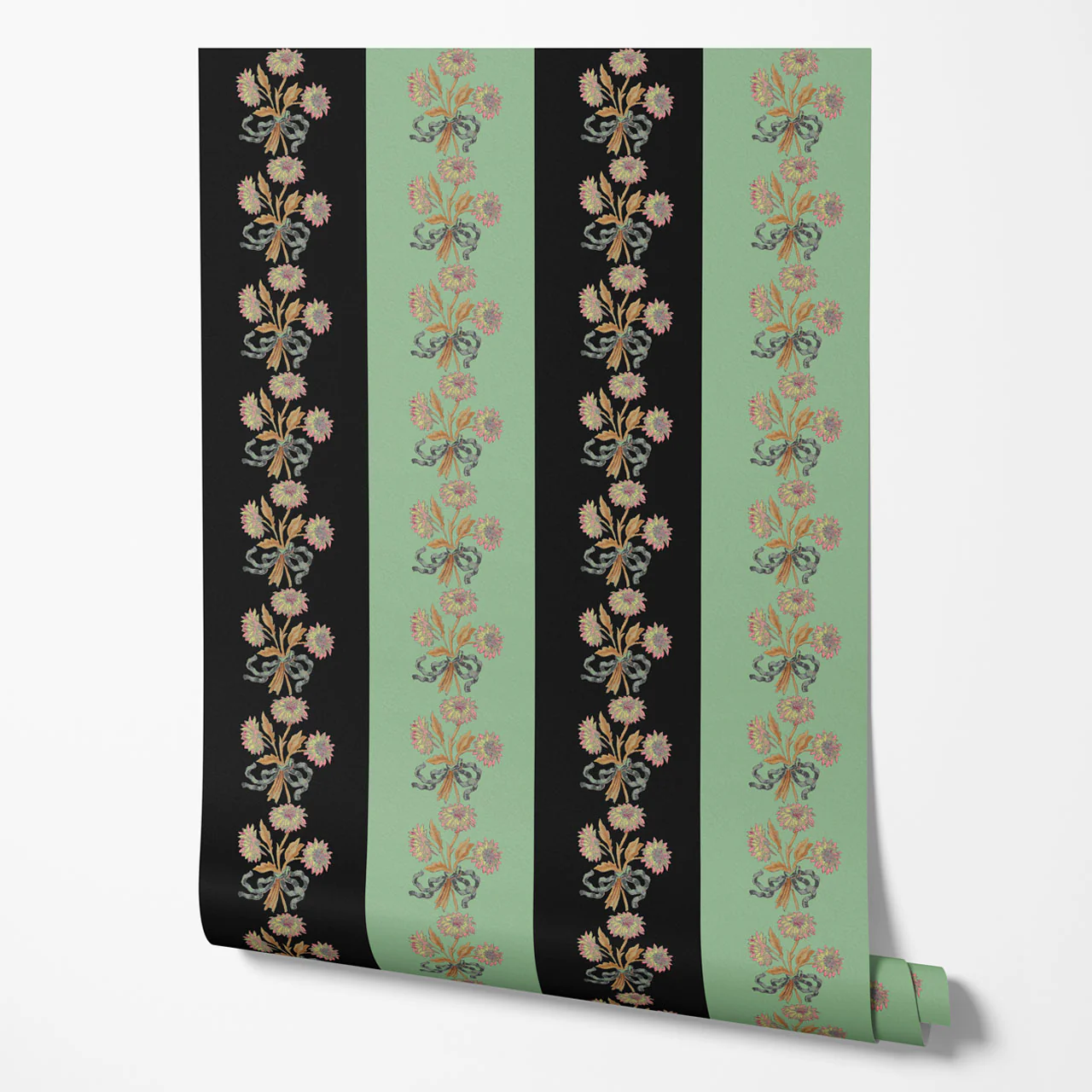 Inspired by the grandeur of French estates, "Chateau Stripe" combines ornate floral motifs and ribbon details in a classic stripe design. With its timeless elegance, this pattern bridges traditional and modern styles, offering a versatile option for both contemporary and classic interiors. The modern twist on a traditional stripe creates a refined, luxurious atmosphere, adding opulence to any space. Whether used in wallpaper or textiles, "Chateau Stripe" is perfect for those seeking to blend sophistication with charm.Â